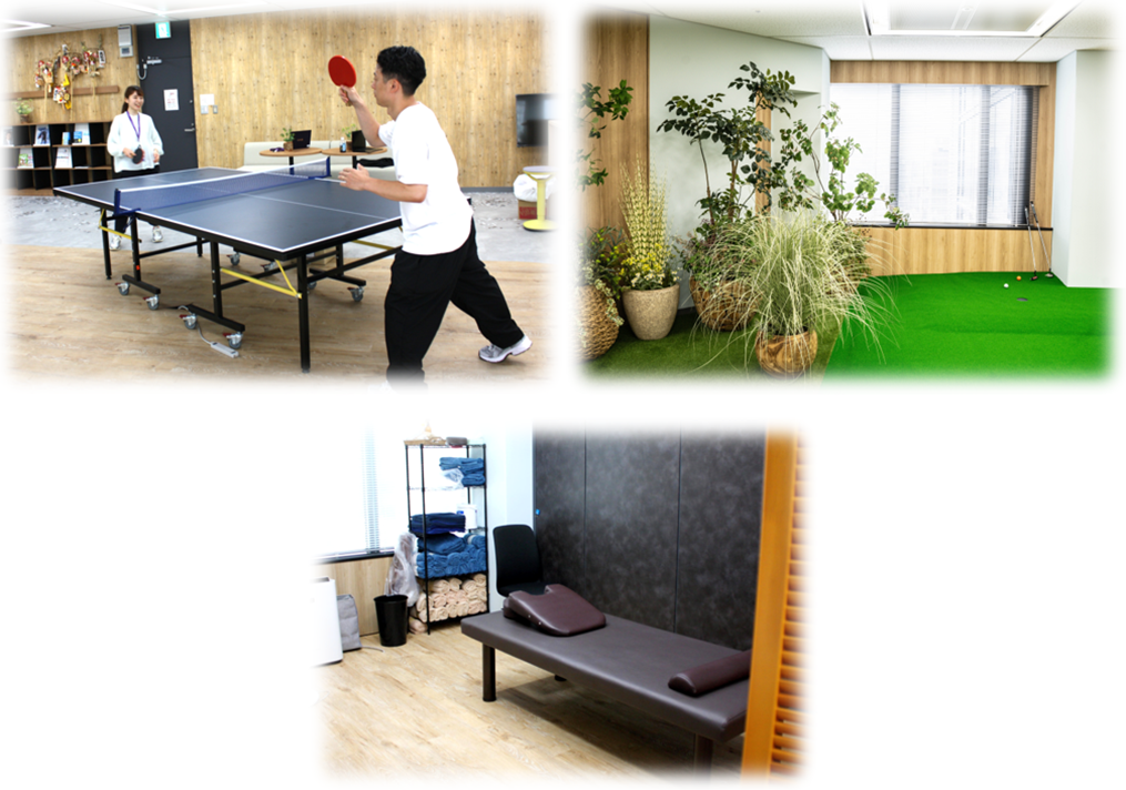 また、25階の一部にも休憩エリアがあります。ここでは食事や休憩ができるほか、卓球やパターゴルフも練習可能です!