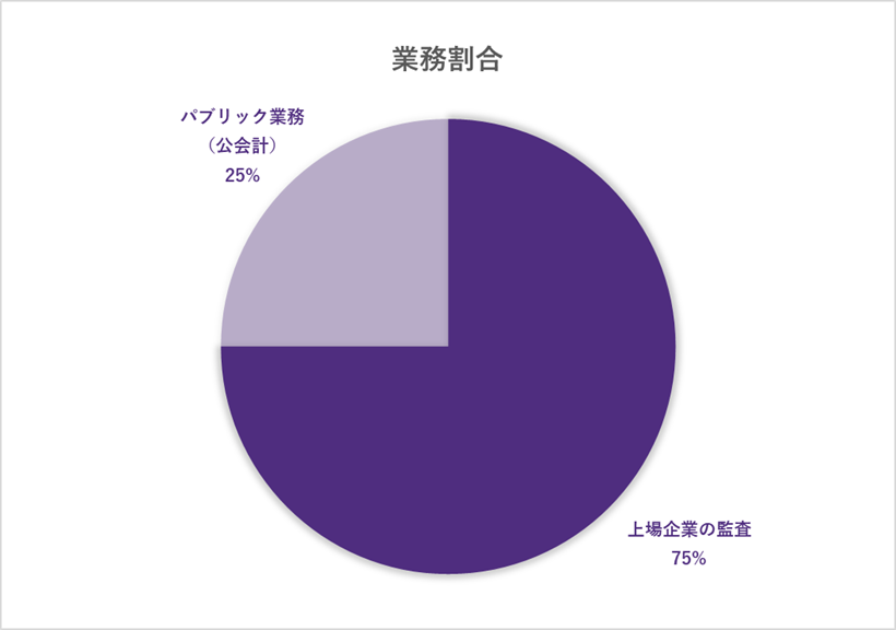 (昨年までIPO業務も円グラフに入っていましたが、クライアントが無事に上場達成したことで、現在のグラフ上は『上場企業の監査』となっています!)