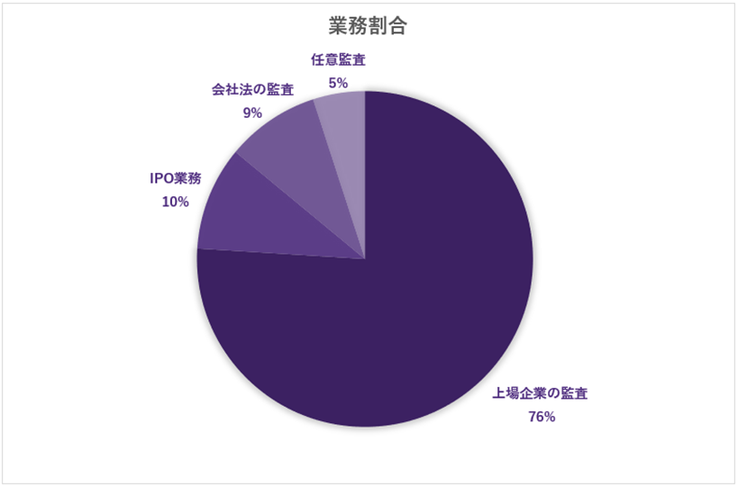 監査業務の割合は、上場企業と会社法の監査を合わせて80%超です。